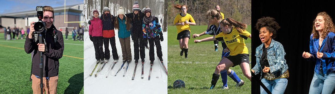 曲棍球、足球、篮球、跑步、啦啦操、橄榄球、网球、滑雪和滑雪板、羽毛球、排球、垒球、田径、游泳、高尔夫、摔跤、曲棍球等;